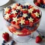 Celebrate the 4th of July with this vibrant and refreshing Patriotic Fruit Salad featuring fresh strawberries, blueberries, bananas, and optional coconut flakes. Lightly sweetened with honey or maple syrup and brightened with lemon juice, this easy-to-make fruit salad is perfect for summer gatherings and family picnics.