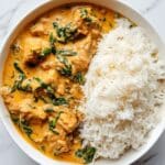 This hearty and flavorful African Chicken Peanut Stew combines tender chicken thighs with a rich peanut butter base, mushrooms, and spinach. Infused with garlic, ginger, and tomato paste, this comforting stew is perfect for a nourishing weeknight dinner that’s easy to prepare in about 30 minutes and serves six.