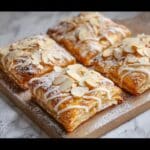 This Almond Danish recipe features flaky puff pastry filled with a smooth, buttery almond filling and topped with sliced almonds and a sweet almond glaze. Perfect for a delightful breakfast or brunch treat, these golden pastries combine crunchy, creamy, and sweet flavors in every bite.