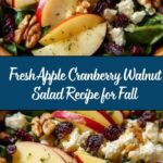 A fresh and vibrant Apple Cranberry Walnut Salad featuring mixed greens, sweet apples, dried cranberries, crunchy walnuts, and tangy feta cheese, tossed in a homemade apple cider vinaigrette. Perfectly suited for a light lunch or a festive fall side dish.