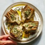 - Assemble and Serve: Spread the whipped ricotta on a serving platter or individual plates. Arrange the sautéed artichokes on top, then drizzle or spoon the herb gremolata over the dish. Season with salt and pepper to taste and serve immediately.