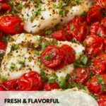 This Baked Cod with Tomatoes recipe features tender, flaky cod fillets baked to perfection with vibrant roasted cherry tomatoes, garlic, capers, and fragrant herbs. Quick and easy to prepare, this healthy seafood dish combines bright lemon and herb flavors with the richness of olive oil and butter, making it a perfect weeknight dinner for seafood lovers.