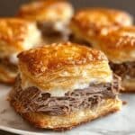 These Baked French Dip Biscuits are a comforting handheld twist on the classic French dip sandwich. Fluffy biscuit dough encases savory roast beef and melty provolone cheese, baked to golden perfection and brushed with a flavorful buttery herb mixture. Served with warm beef broth for dipping, this easy recipe delivers a delicious combination of textures and rich, savory flavors perfect for a satisfying meal or appetizer.