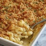 - Add topping to dish: Sprinkle the Cheez-It mixture evenly over the mac and cheese in the baking dish, creating a flavorful crust.
