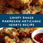 Baked Parmesan Artichoke Hearts are a simple, crispy, and flavorful appetizer or side dish. Coated in a mixture of seasoned breadcrumbs, Parmesan cheese, and herbs, then baked until golden and crispy, they make a perfect savory snack or accompaniment. These artichoke hearts are easy to prepare and delicious served warm with marinara sauce or aioli for dipping.