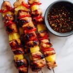 These BBQ Pineapple Chicken Kabobs combine tender marinated chicken with sweet pineapple and colorful vegetables, grilled to perfection for a delicious and easy-to-make summer meal. Marinated in a blend of barbecue and teriyaki sauces with garlic and ginger, these kabobs are juicy, flavorful, and perfect for outdoor grilling or a backyard cookout.