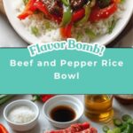 A flavorful and hearty Beef and Pepper Rice Bowl featuring tender sirloin stir-fried with vibrant bell peppers and a savory soy-oyster sauce, served over fluffy white rice. This quick and easy dish combines bold tastes with a satisfying texture, perfect for a weeknight dinner.
