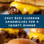 These Beef Cheddar Sandwiches are a savory, cheesy delight perfect for a hearty meal. Ground beef is browned and simmered with aromatic spices and a rich tomato sauce, then layered with cheddar cheese on toasted buns for an irresistible sandwich experience.