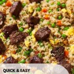 This Beef Fried Rice recipe combines tender marinated beef strips with fluffy, chilled rice and a medley of vegetables, creating a flavorful and satisfying dish. The rice is cooked in chicken broth for extra flavor, then stir-fried with savory soy and beef broth sauce, scrambled eggs, peas, carrots, and green onions. The dish is perfect for a hearty weeknight dinner or meal prep, offering a delightful balance of textures and umami-rich taste.