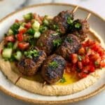 This Beef Kefta with Hummus and Tomato Cucumber Salad recipe is a flavorful Middle Eastern-inspired dish combining spiced grilled ground beef patties with creamy homemade hummus and a fresh, tangy tomato cucumber salad. Ready in just 30 minutes, it’s a perfect balanced meal featuring aromatic spices, vibrant vegetables, and satisfying protein.