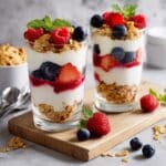 - Repeat Layers: Continue layering yogurt, berries, and granola until all ingredients are used, making sure the final layer is berries topped with a sprinkle of granola for a pretty finish.