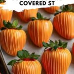 Holding each strawberry by the stem or with a toothpick, dip it into the melted orange candy, covering it completely. Let any excess drip off, then place the dipped strawberries onto parchment paper. Don’t rush; a smooth, even coat is what makes these pumpkin strawberries stand out.