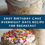 - Serve and Enjoy: When ready to eat, stir the oats if needed, divide into serving jars or bowls, add the vegan sprinkles on top for a festive touch, and enjoy your delicious birthday cake-inspired overnight oats.