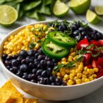 Blueberry Corn Salsa is a refreshing and vibrant twist on traditional salsa, combining juicy blueberries with sweet corn, crisp bell pepper, and a hint of jalapeño heat. Enhanced with lime juice, fresh cilantro, and a drizzle of olive oil, this salsa offers a perfect balance of sweetness, tang, and spice. It’s ideal as a light appetizer, a colorful side dish, or a zesty topping for grilled meats and tacos, perfect for summer gatherings and healthy snacking.