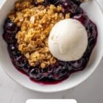 This Blueberry Crisp Recipe freezes beautifully. Assemble it in a freezer-safe dish, wrap it well, and freeze for up to 2 months. When you’re ready, bake it directly from frozen, just adding extra time to the baking process until it’s hot and bubbly.
