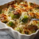 This Brussels Sprouts Gratin is a creamy, cheesy baked side dish featuring tender Brussels sprouts coated in a rich Gruyère and Parmesan cheese sauce, topped with a golden breadcrumb crust. Perfect for holiday dinners or a comforting weeknight meal.