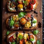 - Add Burrata Cheese: Tear the burrata cheese into pieces and gently place them over the tomato topping on each baguette slice.