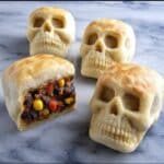 Burrito Skulls are a fun and spooky twist on classic burritos, featuring seasoned ground beef, rice, beans, and cheese stuffed inside crescent dough shaped like skulls. Perfect for a Halloween dinner or party snack, these baked treats combine Mexican-inspired flavors with a playful presentation.