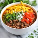 - Vegetarian option: Use vegetable broth and replace meat with plant-based crumbles or extra beans.