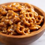 - Cool and Serve: Allow the toffee-coated pretzels to cool completely on the baking sheet to harden. Once cooled, break into clusters and serve or store in an airtight container.