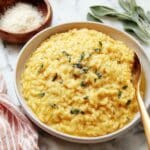 This creamy Butternut Squash Risotto combines the natural sweetness of roasted butternut squash with the rich creaminess of traditional risotto. Cooked slowly on the stovetop, the risotto is first toasted and then gently simmered with vegetable broth, finished with parmesan cheese and pureed squash for a comforting, velvety texture and warm autumnal flavors perfect for a hearty meal.