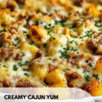 This Cajun Cream Cheese Alfredo with Ground Beef is a rich and flavorful pasta dish combining tender fettuccine with a creamy, spicy sauce made from cream cheese, heavy cream, Parmesan, and Cajun seasoning, paired perfectly with browned ground beef. It’s an easy-to-make comforting meal with a Cajun twist, ideal for a satisfying dinner.