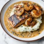 This Cajun Salmon and Shrimp recipe delivers a flavorful seafood dish featuring tender salmon fillets and juicy jumbo shrimp cooked in a rich, creamy Cajun sauce with Monterey Jack cheese and fresh baby spinach. With a perfect balance of spices and creaminess, it’s a satisfying meal ideal for seafood lovers looking for a hearty yet elegant dinner.