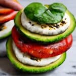 - Serve: Serve the Caprese stuffed avocados immediately to enjoy their fresh textures and flavors. Pair with crusty bread or garlic toast for added crunch and complementing texture.