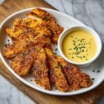 These Cheesy Baked Chicken Tenders with Honey Mustard are a delicious and kid-friendly main course featuring crispy baked chicken coated in a flavorful blend of panko breadcrumbs, cheddar, Parmesan, and spices. Paired with a tangy honey mustard dipping sauce, this easy-to-make recipe is perfect for a quick weeknight dinner or meal prep.