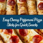 These Cheesy Pepperoni Pizza Sticks are a delicious and easy-to-make snack perfect for parties, lunchboxes, or a quick dinner. Made with crescent or pizza dough stuffed with mozzarella string cheese and pepperoni, then baked to golden perfection and served with marinara sauce for dipping.