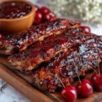 This Cherry BBQ Glaze is a sweet and tangy sauce made with fresh or frozen cherries, perfect for enhancing the flavor of ribs, grilled chicken, pork chops, or any of your favorite grilled meats. Combining the natural sweetness of cherries with classic BBQ ingredients like ketchup, apple cider vinegar, and smoked paprika, this glaze simmers down to a rich, smooth consistency that clings beautifully to your dishes. Easy to prepare on the stovetop, it offers a delightful homemade alternative to store-bought BBQ sauces with a unique fruity twist.