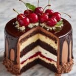 This Cherry Chocolate Cream Cheese Bundt Cake combines rich chocolate cake with creamy sweetened cream cheese and tart cherry filling. The bundt cake features layers of moist chocolate batter infused with coffee, a smooth cream cheese filling, and juicy cherries blending tart and sweet flavors. Finished with a glossy cherry glaze, this indulgent dessert is perfect for special occasions or a decadent treat.