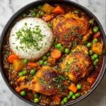 Chicken Afritada is a classic Filipino stew featuring tender chicken simmered in a savory tomato-based sauce with potatoes, carrots, bell peppers, and peas. This comforting dish combines aromatic garlic and onions with a hint of sweetness and soy sauce, making it a perfect family meal served hot over steamed rice.
