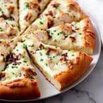 This Chicken Alfredo Pizza combines the creamy richness of Alfredo sauce with tender cooked chicken and mozzarella cheese on a crispy, golden crust, creating a deliciously satisfying Italian-American main course perfect for family dinners or gatherings.