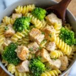 This Chicken and Broccoli Pasta is a creamy, comforting Italian-American dish perfect for an easy weeknight dinner. Tender chicken breast pieces are sautéed and simmered in a rich Parmesan cream sauce with garlic and chicken broth, then tossed with perfectly cooked pasta and vibrant broccoli florets. Enhanced with a touch of lemon zest and fresh parsley, this dish strikes a delicious balance of flavors and textures, coming together quickly using the stovetop for a satisfying main course.