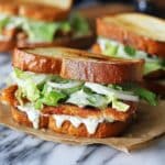 This Chicken Caesar Sandwich offers a quick and easy lunch solution combining crispy fried chicken cutlets with a creamy Caesar-style dressing, fresh romaine lettuce, and savory Parmesan cheese, all nestled inside toasted ciabatta rolls. Optional additions like crispy beef bacon, ripe tomato, and red onion bring extra layers of flavor and texture to this satisfying sandwich.