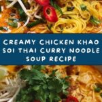Chicken Khao Soi is a flavorful Northern Thai coconut curry noodle soup featuring tender chicken thighs simmered in a rich, fragrant broth made with red curry paste, turmeric, and coconut milk. Served over egg noodles and garnished with fresh herbs, crispy shallots, and lime, this dish offers a perfect balance of creamy, savory, and tangy flavors.
