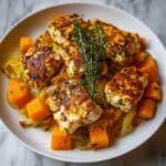 This Chicken Leek and Butternut Squash Bake is a comforting and hearty casserole combining tender chicken, sweet butternut squash, and aromatic leeks in a creamy sauce, topped with Parmesan and mozzarella cheese. Perfect for a wholesome, gluten-free main course, it’s a delicious fall-inspired dish baked to golden perfection.