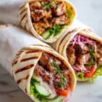This authentic Chicken Shawarma recipe features tender, juicy chicken thighs marinated in a flavorful blend of Middle Eastern spices and yogurt, then roasted or grilled to perfection. Served with warm pita, fresh vegetables, and your choice of garlic sauce or tahini, it offers a delicious and easy way to bring the bold flavors of the Middle East to your dinner table.