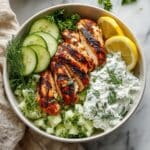 This Chicken Tzatziki Bowl is a vibrant and healthy Mediterranean-inspired meal, featuring grilled chicken breast served over a base of quinoa or rice, topped with fresh diced vegetables, feta cheese, and creamy tzatziki sauce. Perfect for a quick and flavorful lunch or dinner, it’s easy to prepare and packed with nutritious ingredients that bring a refreshing and satisfying taste.