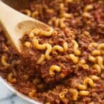 - Combine Ingredients: Add the cooked pasta to the skillet with the beef and onions. Pour in the can of chili beans (with liquid), the can of mild Rotel tomatoes (with liquid), and sprinkle the mild chili seasoning over the mixture. Stir everything thoroughly and allow it to cook together for 5 to 8 minutes, letting the flavors meld.