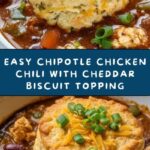 This Chipotle Chicken Chili with Cheddar Bay Biscuit Topping is a comforting and flavorful one-pot meal that combines smoky, spicy chipotle chicken chili with a cheesy, buttery biscuit topping baked to golden perfection. Perfect for gatherings or cozy family dinners, it offers a delicious blend of tender chicken, white beans, and bold spices under a crispy cheddar biscuit crust.