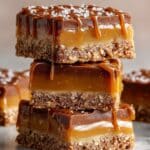 These decadent Chocolate Caramel Oatmeal Cookie Bars combine rich caramel sauce with chewy oatmeal cookie dough and melty milk chocolate chips, baked to perfection for a delightful treat. Perfect for dessert or a sweet snack, these bars offer a satisfying blend of flavors and textures, from buttery caramel to wholesome oats.
