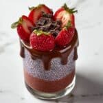 A healthy and decadent Chocolate-Covered Strawberry Chia Pudding that combines creamy almond milk, antioxidant-rich chia seeds, and rich cocoa for a deliciously satisfying dessert or breakfast. It’s sweetened naturally with maple syrup and topped with fresh strawberries and melted dark chocolate for an irresistible treat.