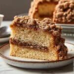 - Assemble Cake: Spread half of the cake batter evenly in the prepared baking pan. Sprinkle half of the streusel topping evenly over the batter. Repeat with the remaining batter and streusel, layering carefully.