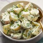 - Red potatoes hold their shape better when boiled, preventing the salad from becoming mushy.