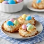 Delightfully chewy and sweet Coconut Macaroons shaped like Easter Bird’s Nests, these treats are perfect for spring celebrations. Made with sweetened flaked coconut, condensed milk, and almond extract, then topped with melted white chocolate and colorful Cadbury mini eggs, they combine textures and flavors that evoke the spirit of Easter and springtime fun.