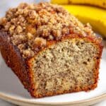 - Assemble and Bake: Pour the banana bread batter into the prepared loaf pan and spread evenly. Sprinkle the coffee cake topping evenly over the batter. Bake for 55 to 60 minutes, or until a toothpick inserted in the center comes out clean and the topping is golden and crumbly.