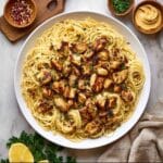 Cowboy Butter Chicken Linguine is a flavorful and hearty pasta dish featuring tender chicken pieces sautéed in a rich garlic butter sauce with a hint of smoky paprika and a touch of heat from red pepper flakes. Tossed with perfectly cooked linguine and fresh herbs, this American-inspired main course is perfect for a satisfying weeknight dinner.