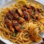 This Cowboy Butter Chicken Linguine is a rich and flavorful pasta dish featuring tender, buttery chicken breasts cooked to golden perfection and tossed in a creamy garlic and herb sauce with linguine. The addition of Italian herbs and a hint of red pepper flakes creates a deliciously balanced meal ready in just 40 minutes, perfect for a comforting weeknight dinner.
